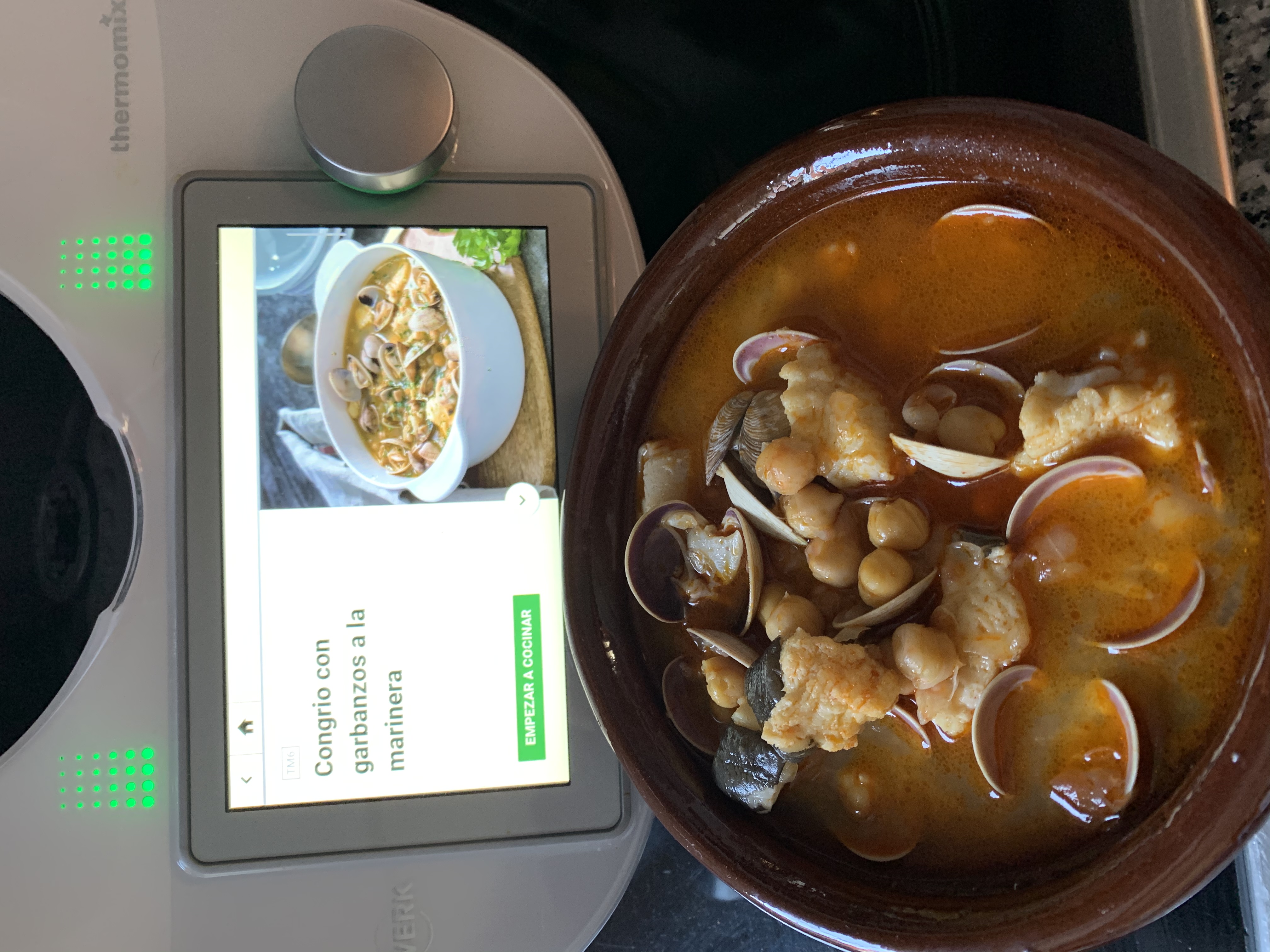 Que mejor en el otoño que un buen plato de cuchara..., lo hice para comer hoy y os lo recomiendo, el sabor que da el congrio y las almejas a los garbanzos no os lo podéis ni imaginar... no será la última vez que haga esta receta, es rápida, no tiene complicaciones y gusta mucho... mucho...